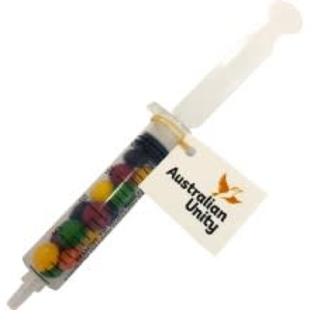 Branded Syringe Filled with 20g Skittles
