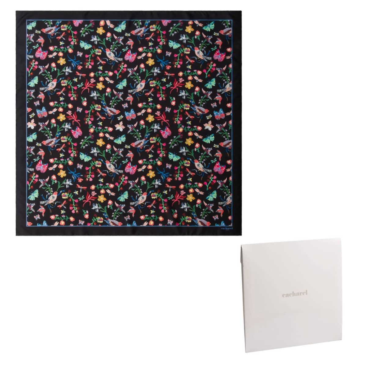 The Cacharel “Butterfly” Black Silk Scarf is an exquisite accessory that embodies refinement and artistic flair. Printed with a vibrant array of florals and birds inspired by exotic gardens, this scarf transforms a simple outfit into a fashion-forward ensemble. Crafted from the softest silk, it offers a luxurious hand-feel that speaks volumes about quality and elegance.