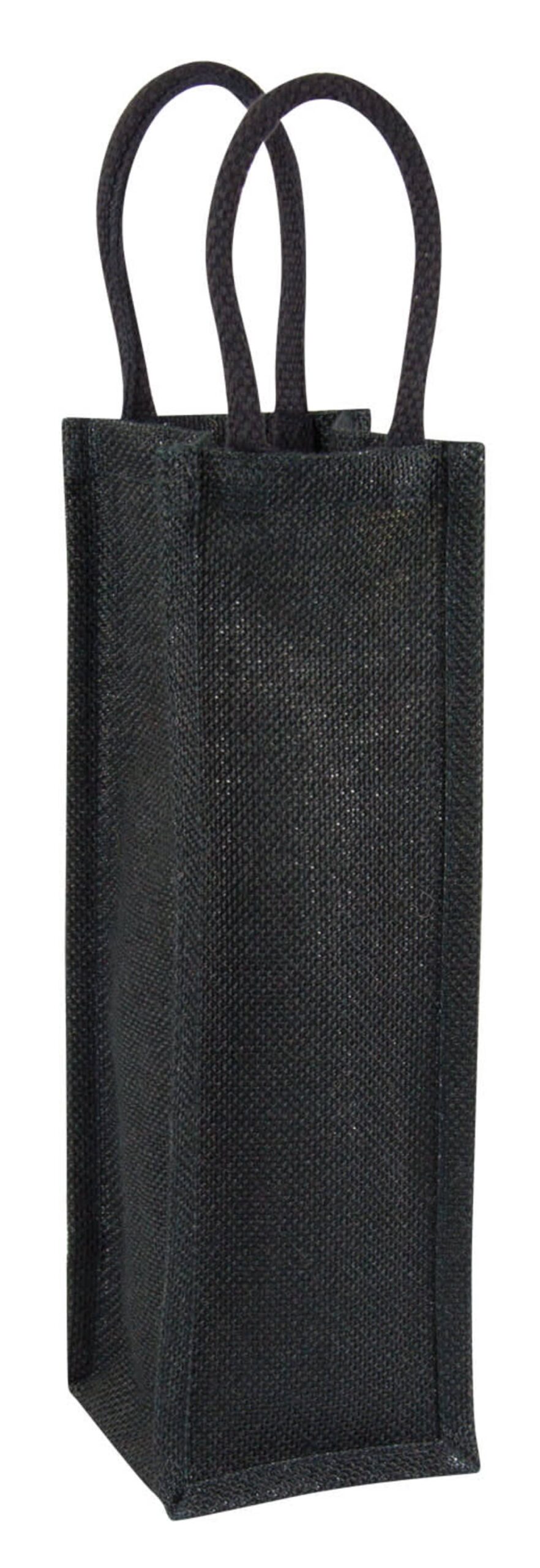 This Bottle Carrier Bag is made from jute, a naturally sustainable product, ideal for adding a feel-good vibe to your marketing campaign. This bag is sized to hold one regular bottle of wine and has strong gussets on either side that will expand when the bag is filled. The bag has a laminated inner lining that is waterproof, preventing damage to the outer jute layer. Two strong rope handles are attached to the top of the bag, making it a great grab-and-go option. When not in use, the bag folds up into a small flat item, using minimal storage space.