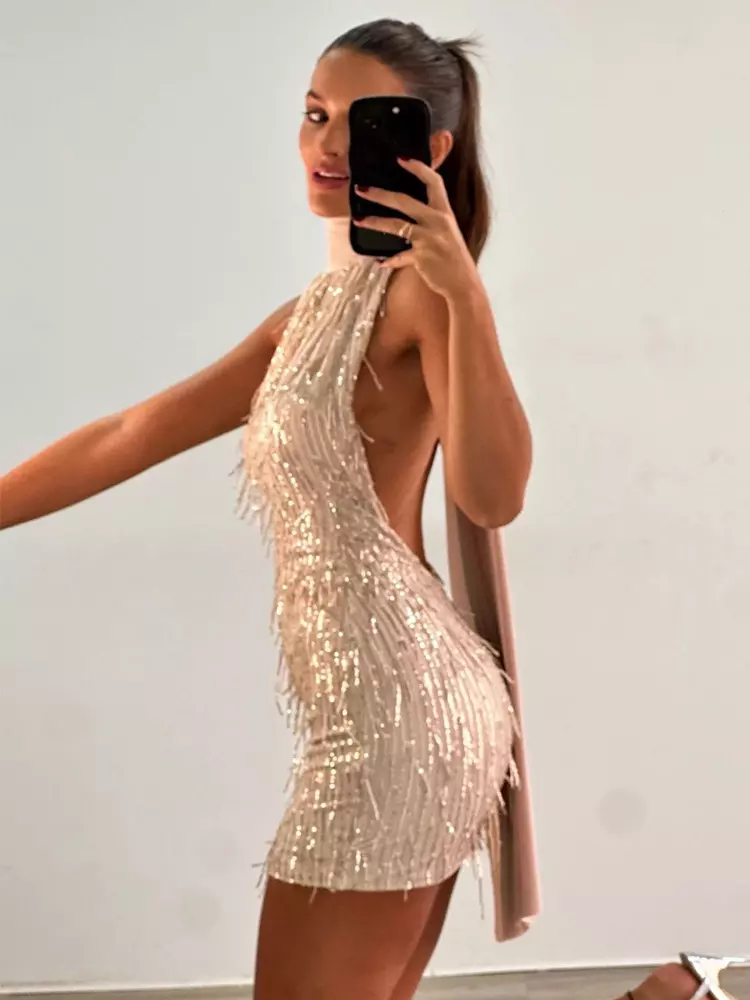 Casual Sequin Halter Solid Color Sparkly Sleeveless Mini Dress