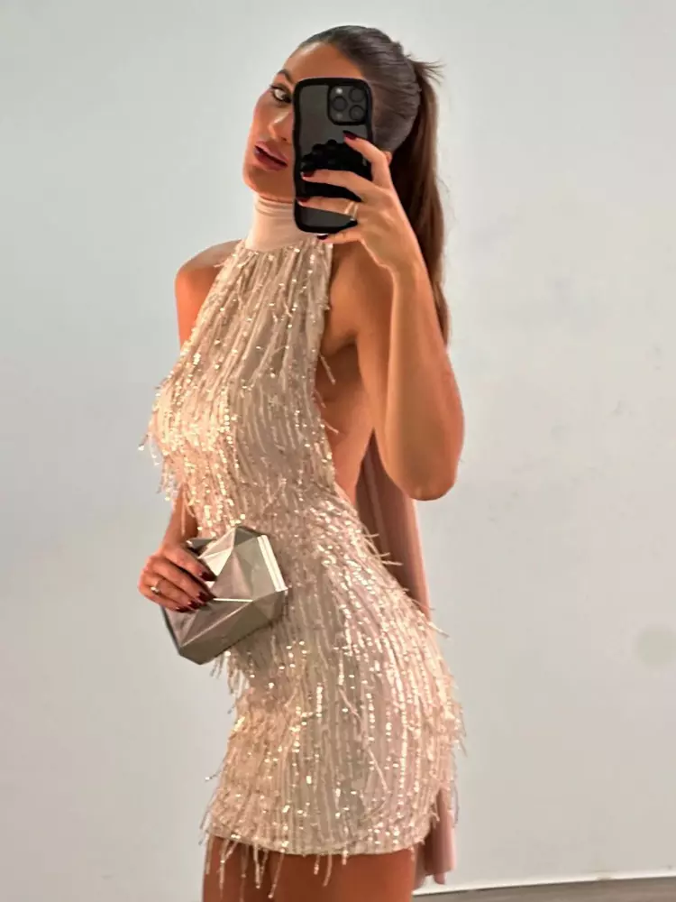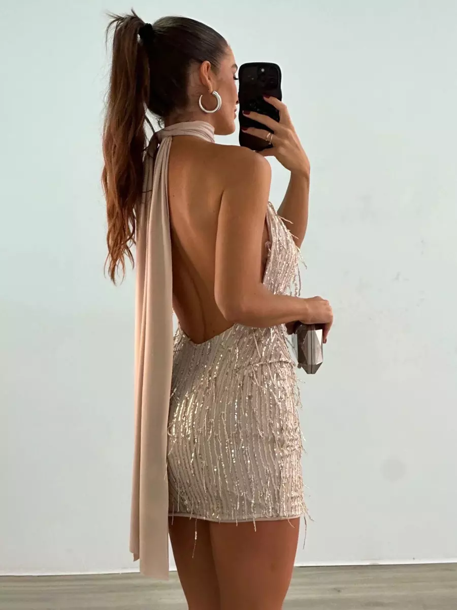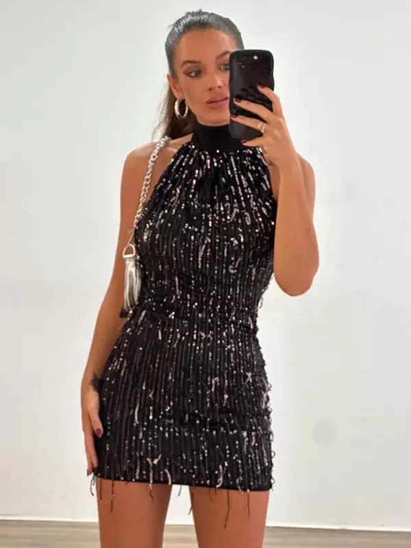 Be the first to review “Casual Sequin Halter Solid Color Sparkly Sleeveless Mini Dress”