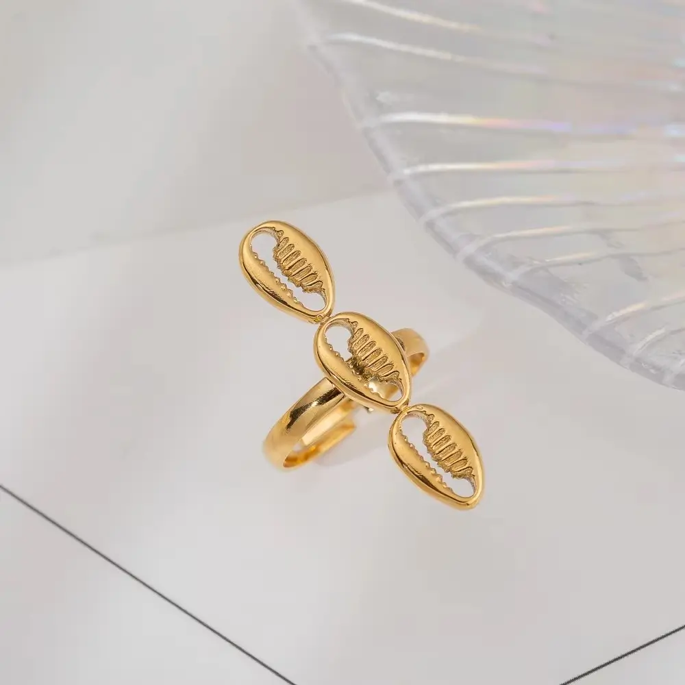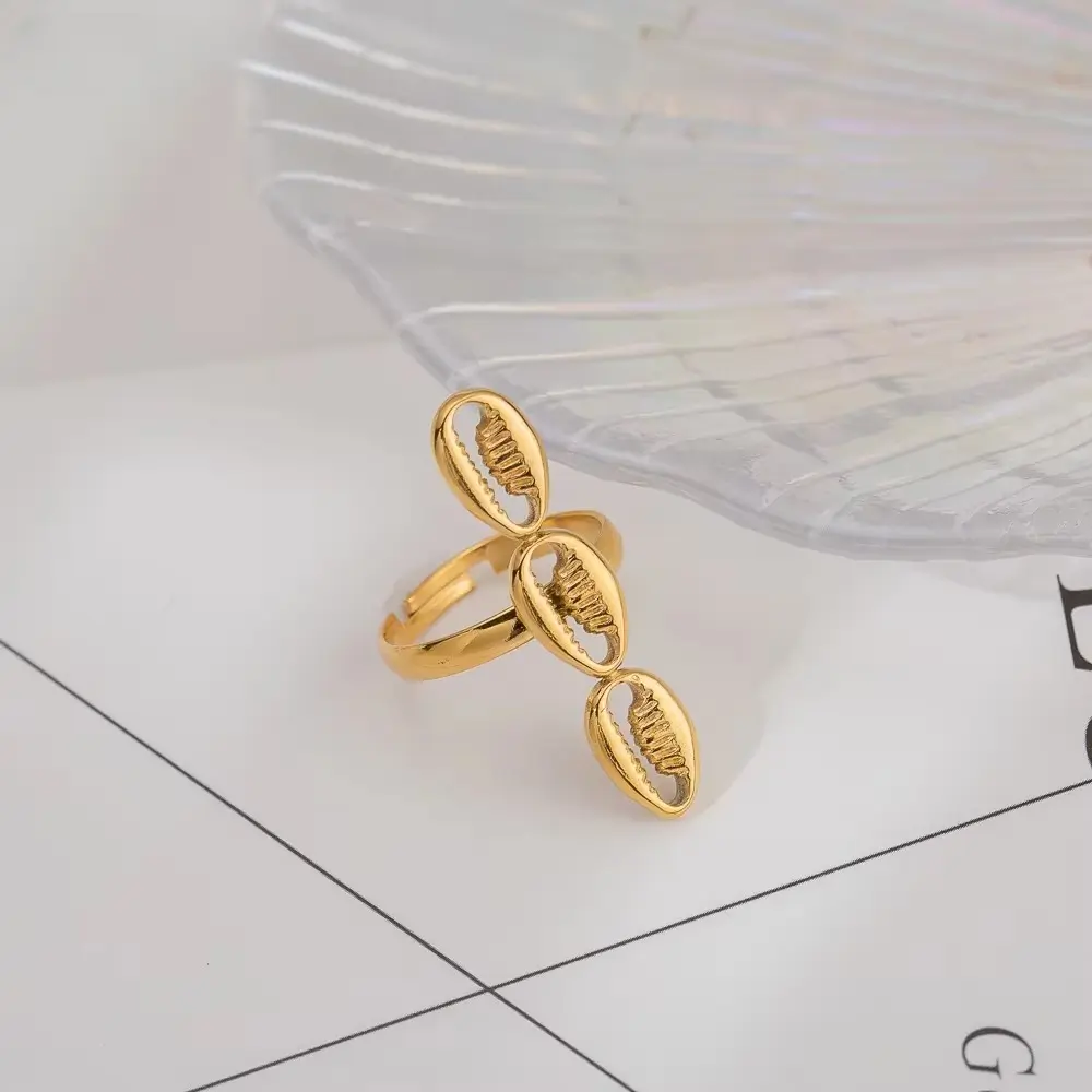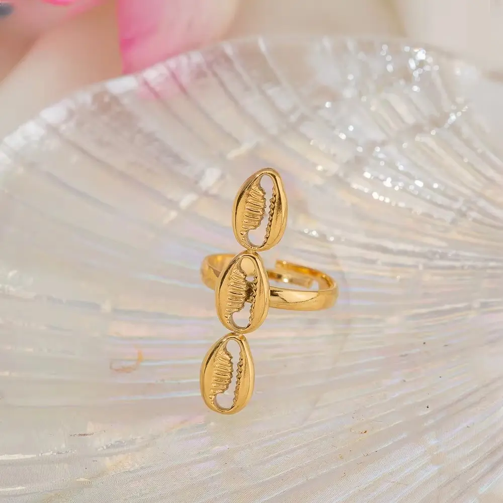 • Stainless Steel Shell Ring Colorfast Stain-free Jewelry|Material: Stainless Steel:Crafted from durable stainless steel, this ring resists tarnish and corrosion for lasting wear.