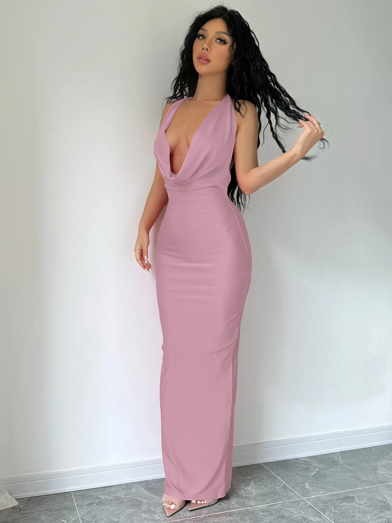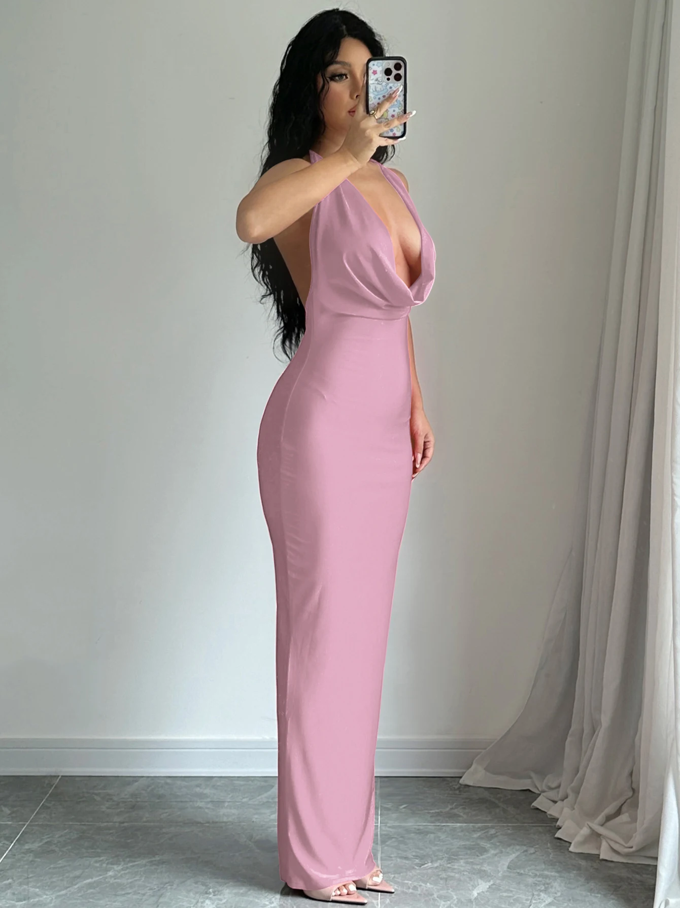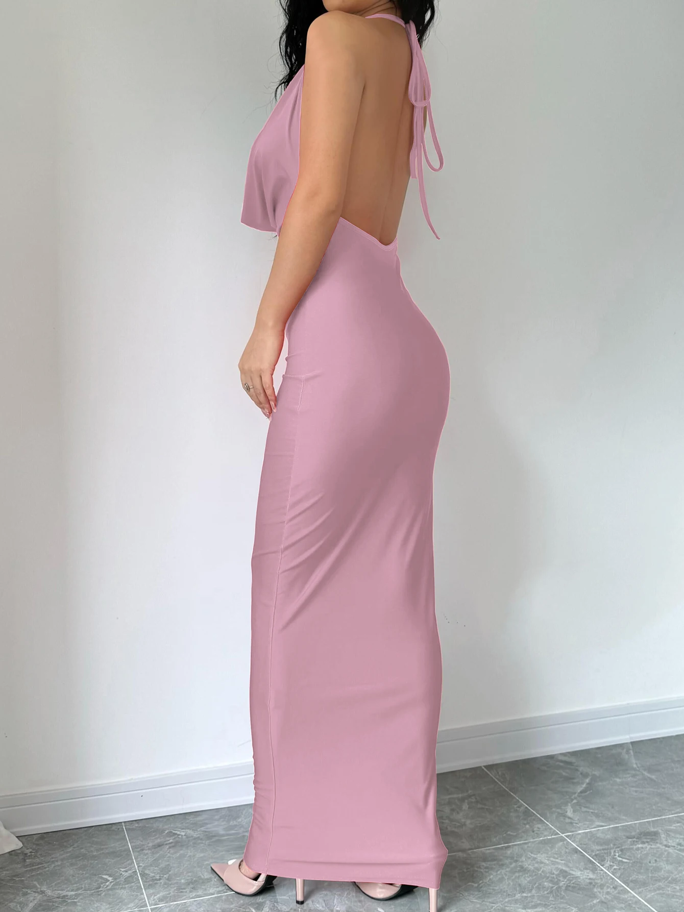 Elegant Halter Backless Party Outfits Evening Birthday Bodycon Maxi Dress