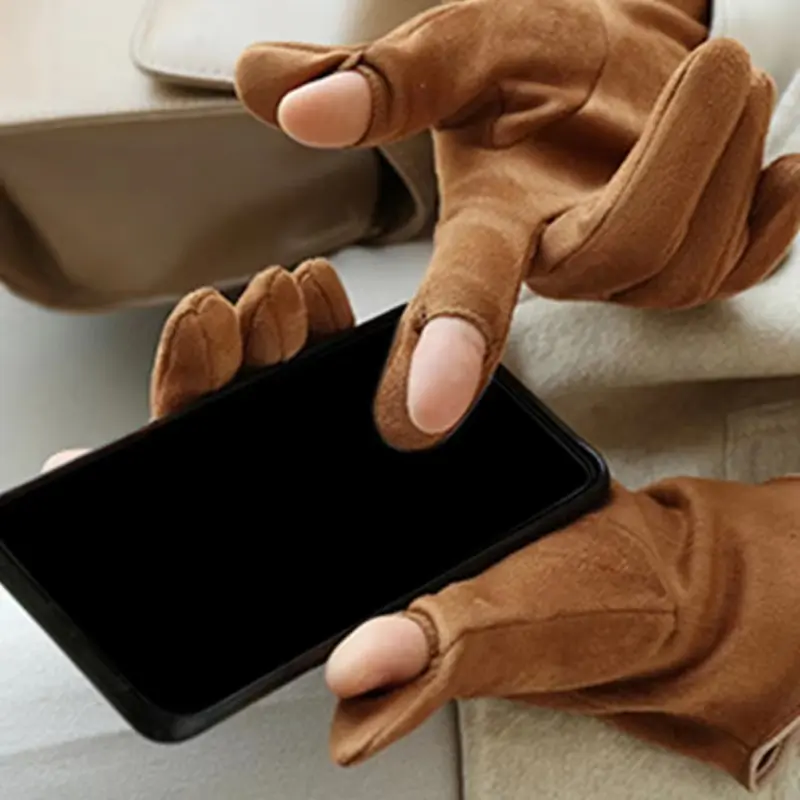 Elegant Keep Warm Mittens Thin Cashmere Solid Cycling Drive Suede Fabric Touch Screen Gloves