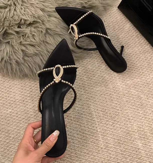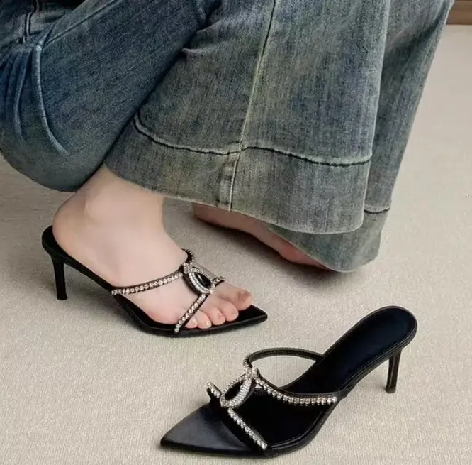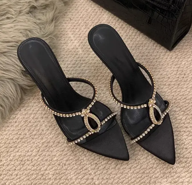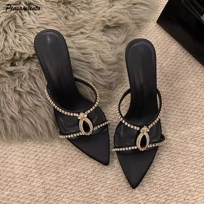 Luxury Rhinestones Pointed toe Stiletto High heels Mules Slides Sandals