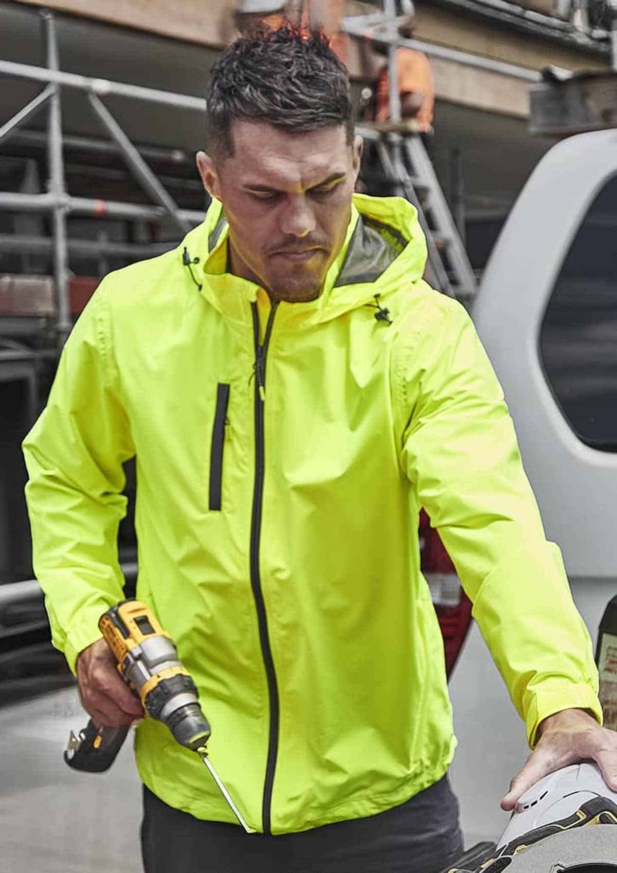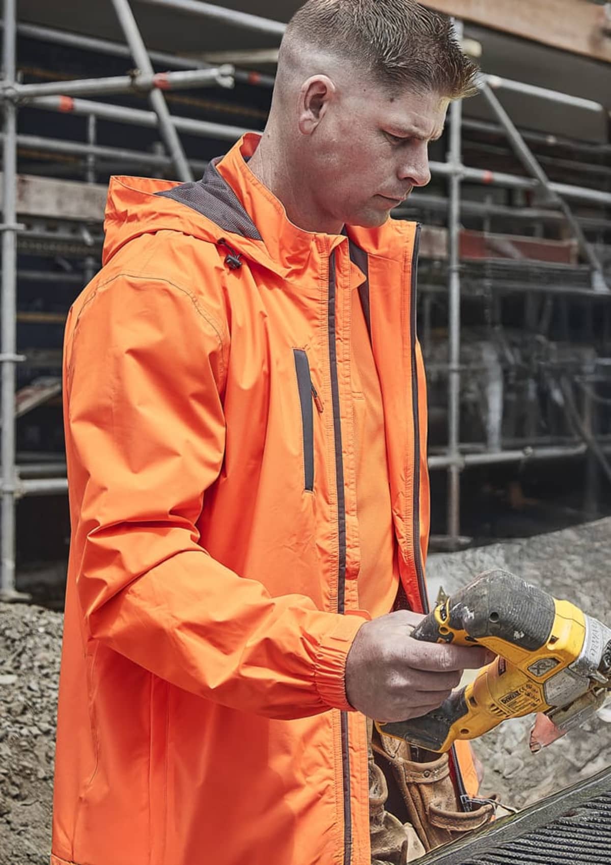 NimbusLite: Lightweight, Breathable, and Protective. The NimbusLite jacket provides top-tier wet weather protection while remaining incredibly lightweight and breathable. With waterproofing up to 10,000mm and fully seam-sealed construction, this jacket ensures you stay dry even in the heaviest rain. Rated for 3000g/m²/24hrs breathability, it keeps you comfortable during work or outdoor activities. Designed with a packable pocket and a carabiner for easy storage, the jacket can be clipped to your belt or car for convenience. Mesh lining increases breathability while keeping the weight low, and multiple zippered pockets keep your items safe and secure.