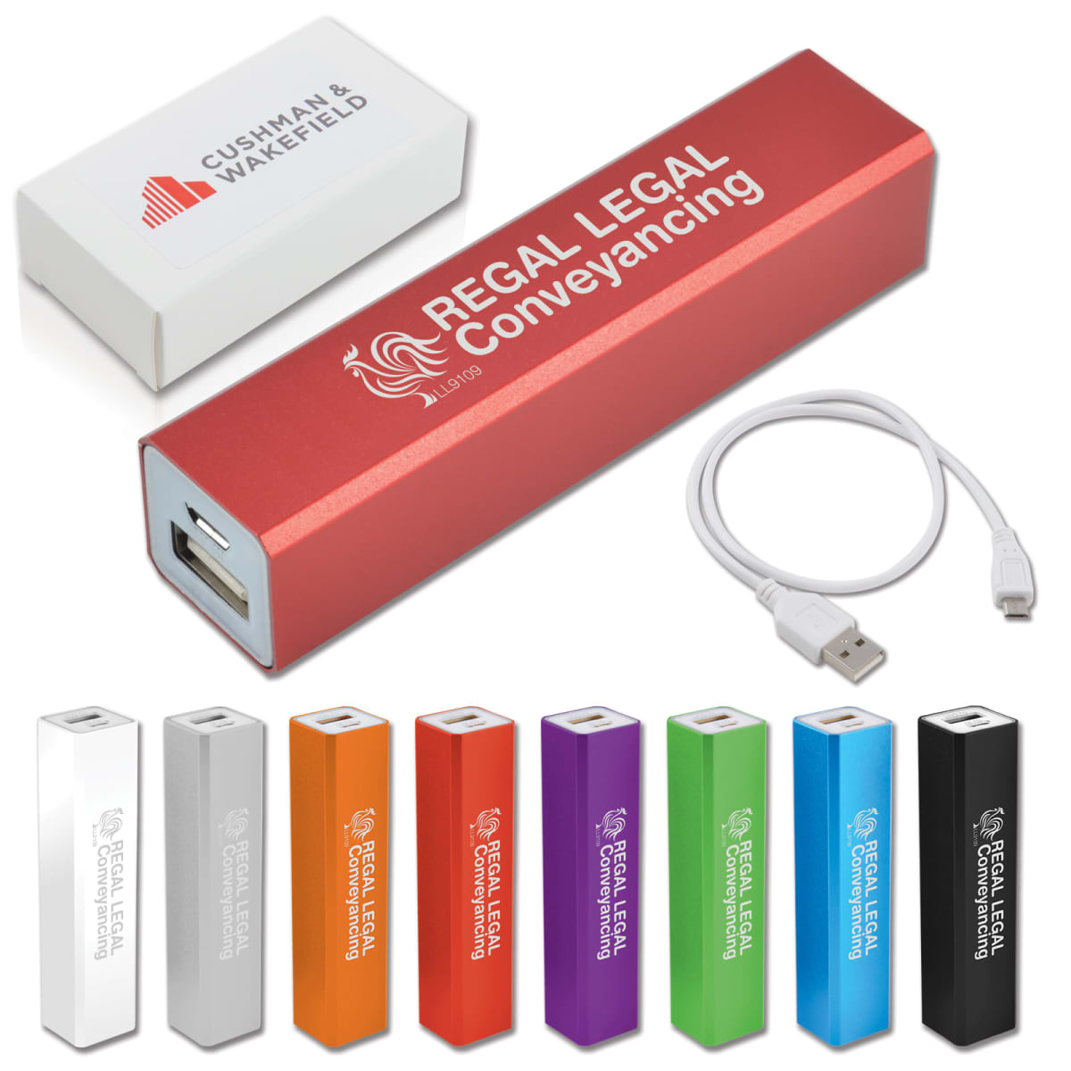 Buy a promotional power bank that boasts both high-quality internal parts and a price tag that won’t break the budget when you order our Power Bank Charger Best Sellers in bulk today. These power banks feature colourful aluminium outer cases, and safety tested interior components so you can confidently use these items as corporate gifts or as promotional goods. Cubic Promote will brand each custom mobile battery with your unique logo or artwork design.