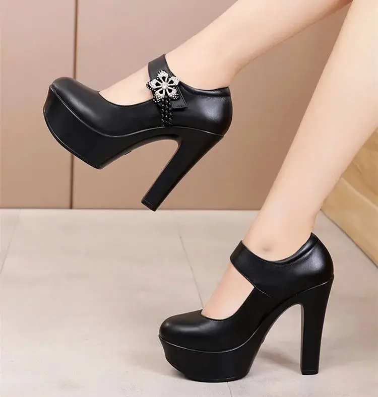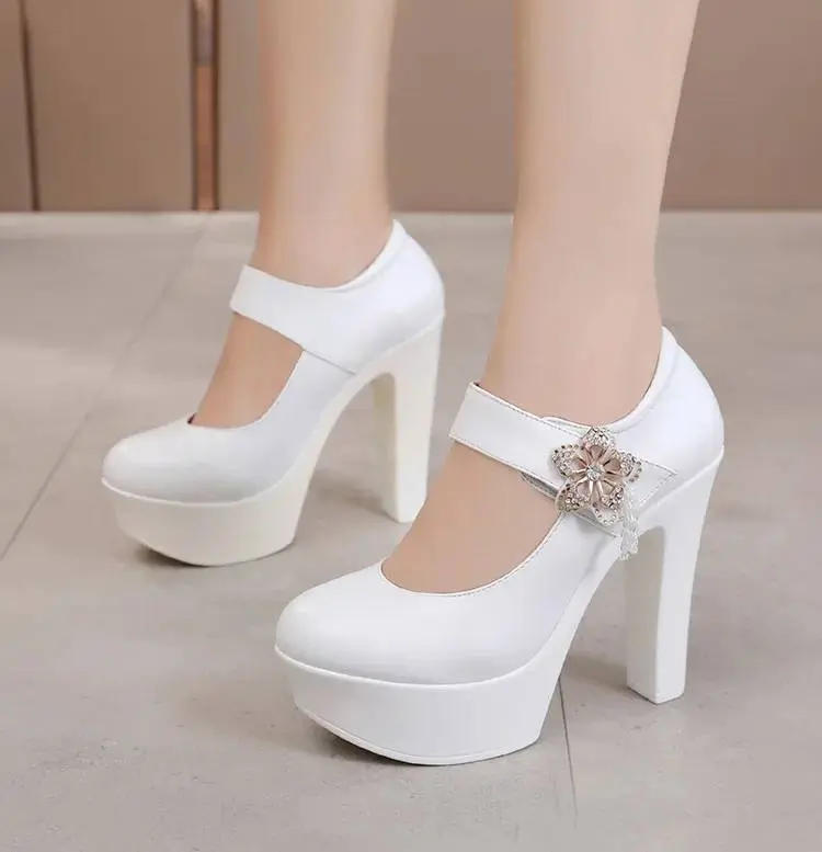 Soft Leather Platform Wedding Party Block High Heels Pumps