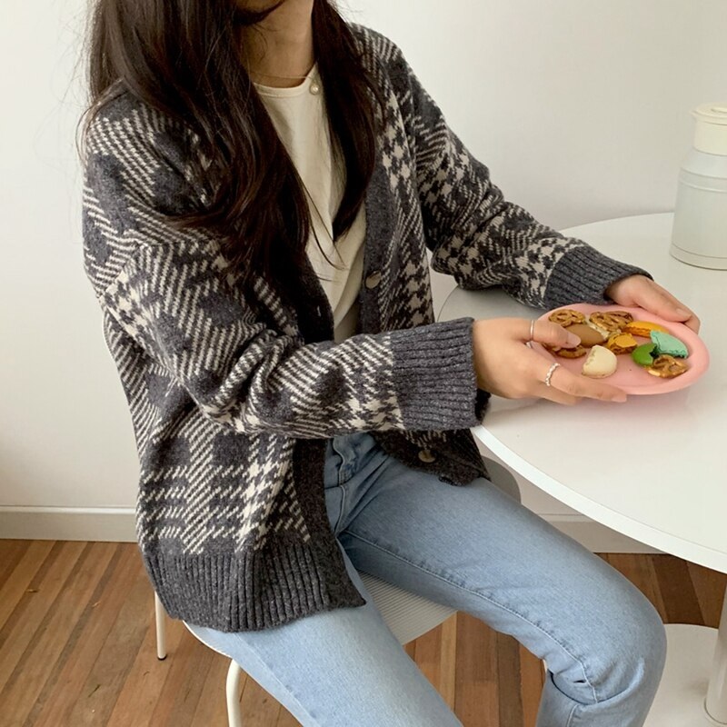 Be the first to review “Solid V-Neck Knitted Buttons Korean Style Plaid Sweaters”
